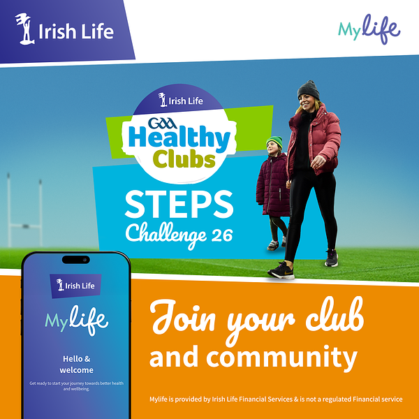 A reminder to all players, parents, supporters, and community members that the Irish Life GAA Healthy Clubs Steps Challenge kicks off next week.