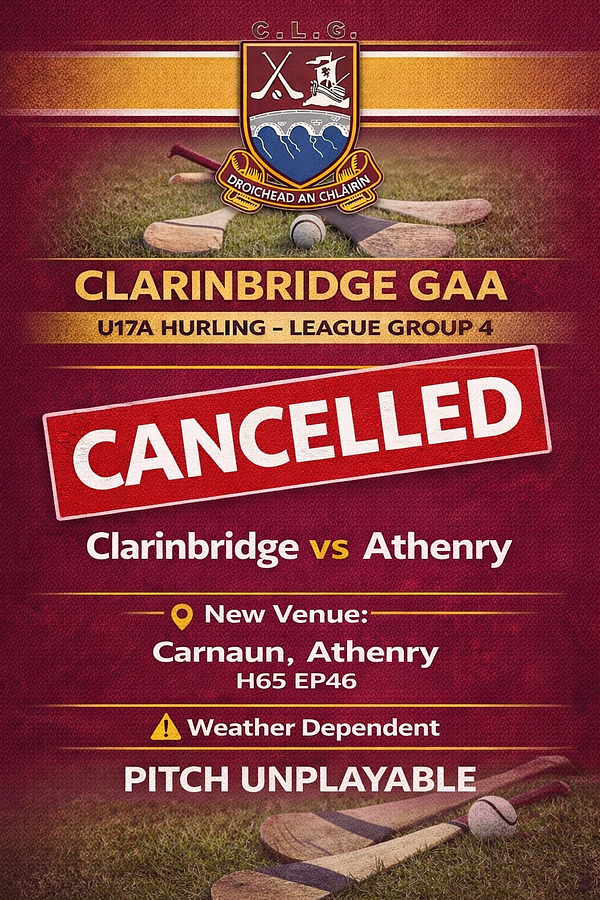 🚨 Club Fixture Update 🚨U20 Hurling🆚 Ballinderreen vs C...