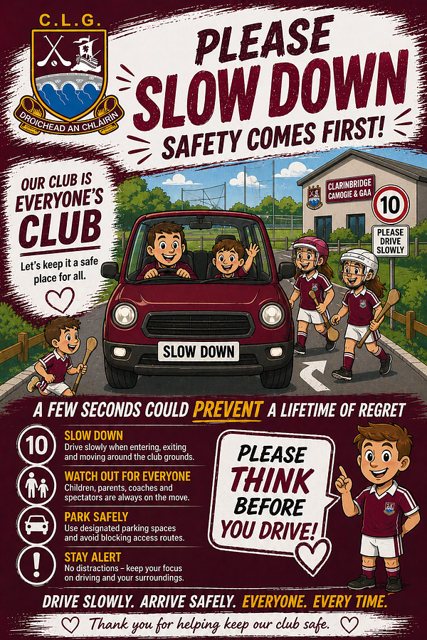 A gentle reminder to all members, parents, and visitors to please slow down when driving to and from the club grounds and while moving around the car park.
